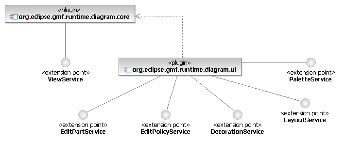 A set of services with-in the GMF diagram plug-ins provide this extensibility for the platform.� They are more or less consistent in their usage but have some differences to account for their functionality.� Notable common denominators:
