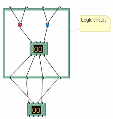 If we consider the logic circuit in the example we provide as part of the SDK, this has complex behavior for containment, creation of the terminals and color display.� Using the GMF infrastructure, the shape was constructed using a shape compartment for containment and the terminals are created using a border shape infrastructure to avoid having to construct these concepts from first principles.