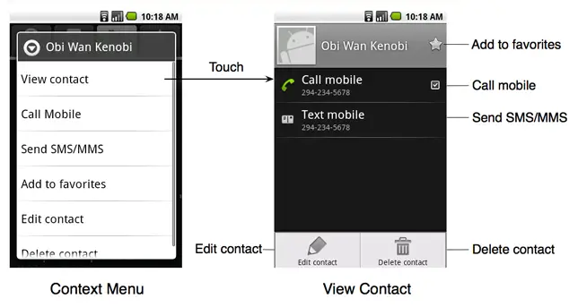 "Obi Wan Kenobi" runs the same command "View contact" that is listed