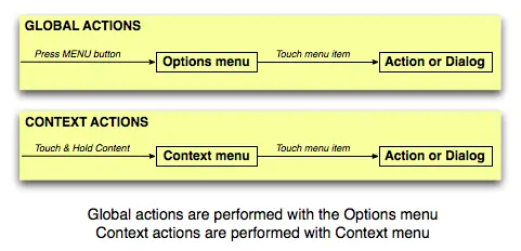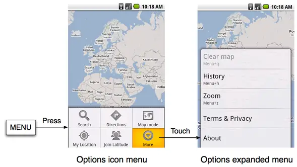 It is typically invoked by a user pressing a hard button, often labeled MENU.