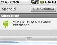 parameters of the setLatestEventInfo() method. However, you can also define a custom layout for the expanded view using
