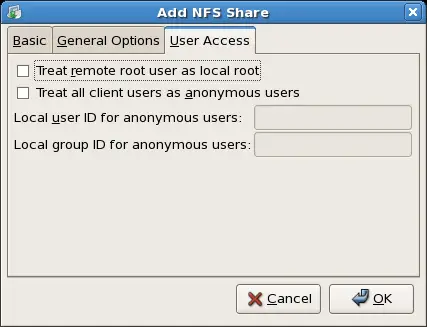 of the system. Do not select it unless it is absolutely necessary. This option corresponds to no_root_squash.