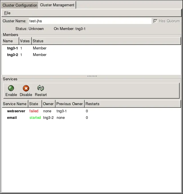 the Red Hat Cluster Suite management GUI, (the system-config-cluster package) and is accessed by a