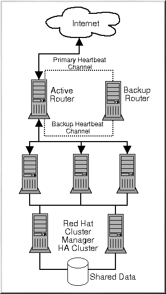 of real servers. Each of the real servers then accesses a shared