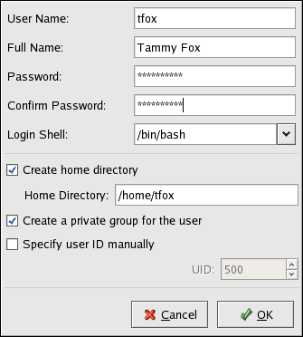 assigned to the new user. Red Hat Enterprise Linux reserves user