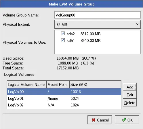 logical volume. To add a logical volume, click the Add button in the Logical