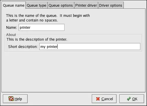queue type of the printer can be changed or just the settings.
