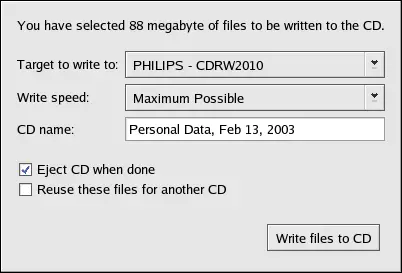 When you are ready to write the files to your CD or DVD, click