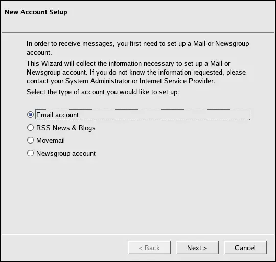 Account Setup screen appears again. Select Newsgroup account and then click Next.