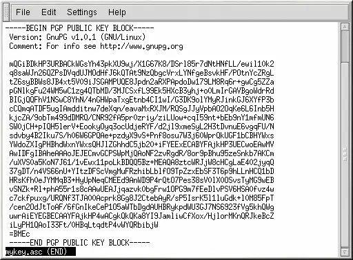 Key) with a pager — for example, use the less mykey.asc command.