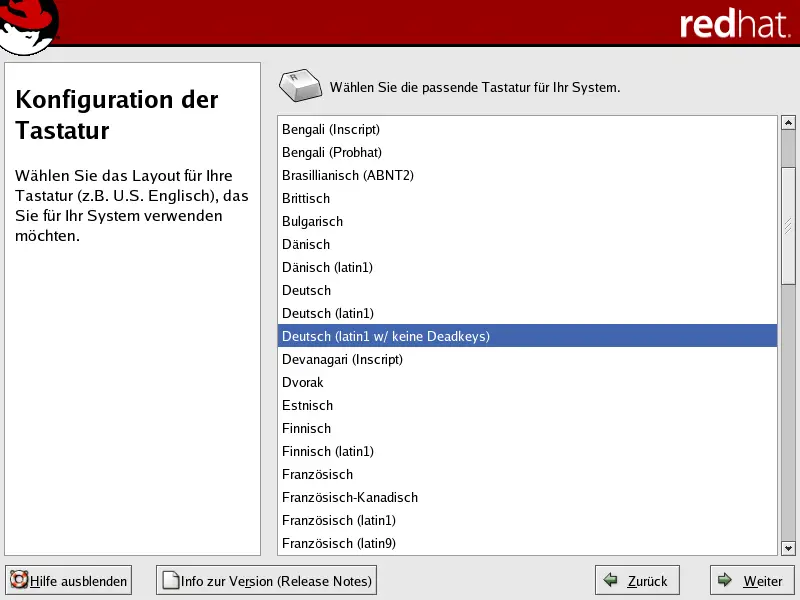 Linuxtopia - Red Hat Enterprise Linux Installationshandbuch fur x86, Itanium und AMD64 - Konfigurieren der Tastatur