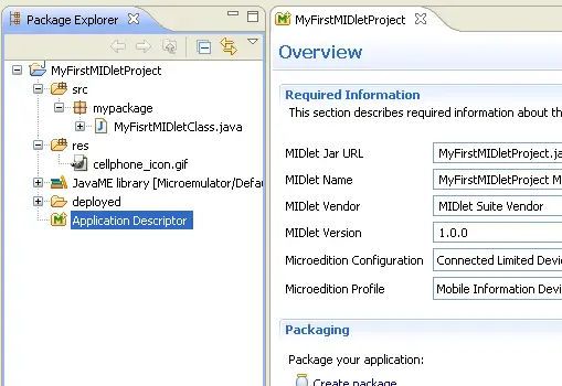 - In the Package Explorer view, find the main MIDlet class and