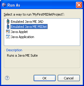 and select Run As > Emulated Java ME MIDlet. The Run