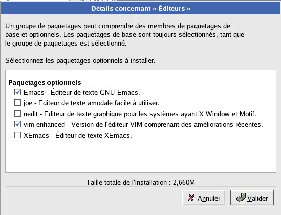 Une fois que vous avez s�lectionn� un groupe de paquetages, cliquez sur D�tails afin de voir les paquetages qui seront install�s par d�faut et afin d'en ajouter ou d'en supprimer.