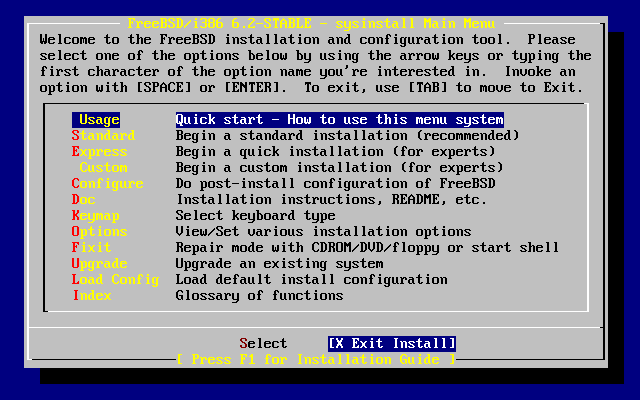 country and keymap easily. It is also easy to exit the sysinstall program and start over again.