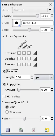 The Blur/Sharpen tool uses the current brush to locally blur or sharpen your