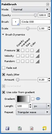 Mode; Opacity; Brush; Scale; Brush Dynamics; Fade Out; Apply