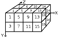 dimensions array (3D). It's easy to imagine a 2D array: on a paper