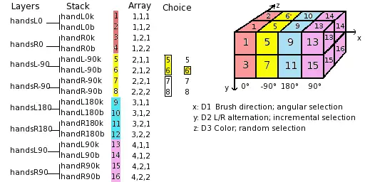 bottom, alternating Left and Right: handL0k, handR0k, handL-90k,