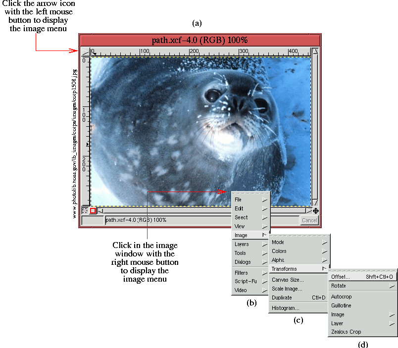 the GIMP menus, the keyboard shortcuts are denoted by capital letters,