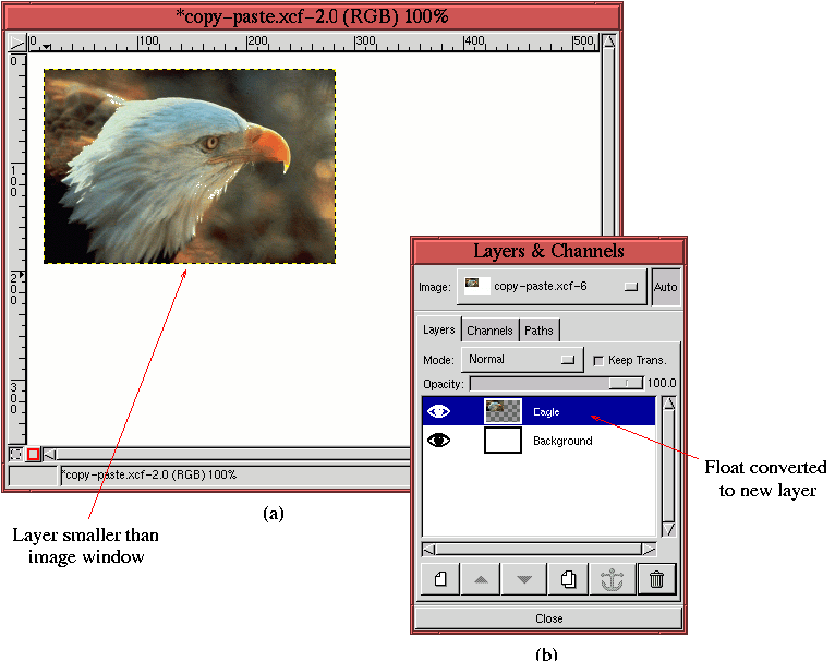 The importation of layers into an image is accomplished using the Copy , Cut, and Paste editing functions (see
