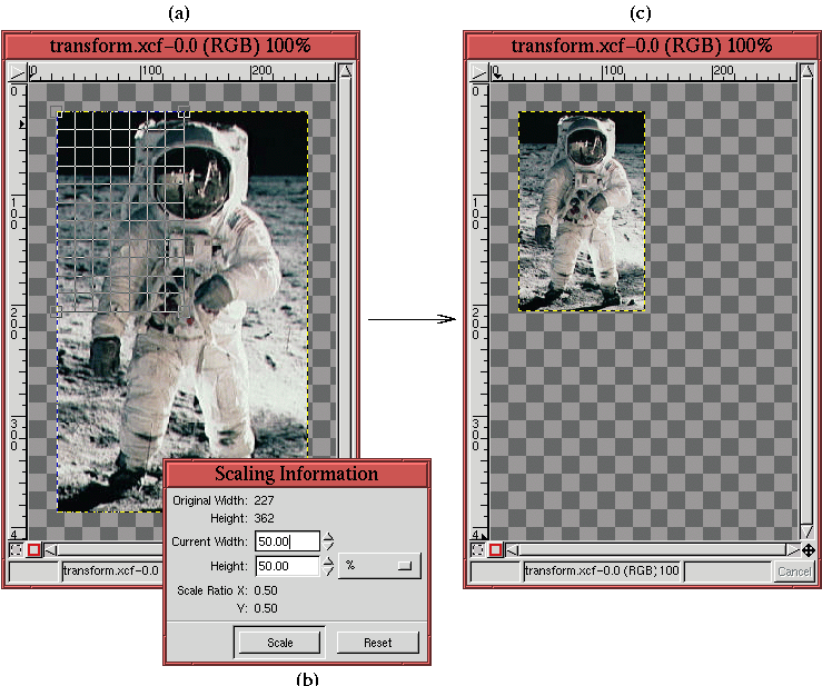are shown at the top of the Scaling dialog as the Original Width and