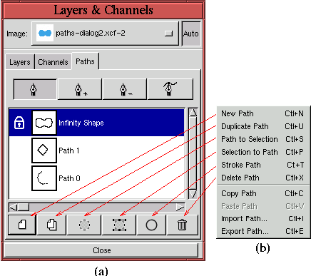 Like the Layers dialog and the Channels dialog, the Paths dialog also