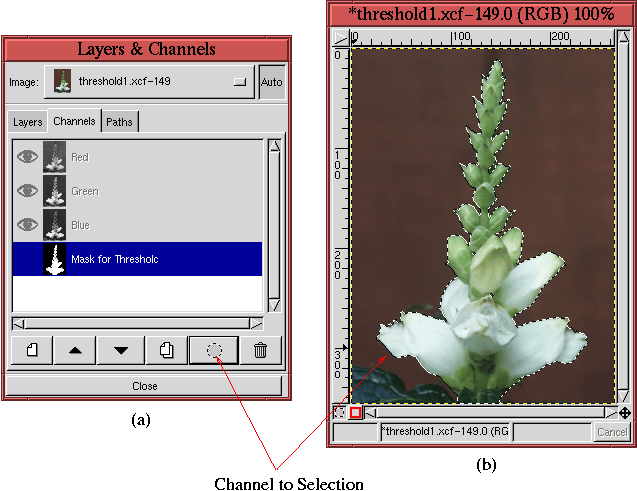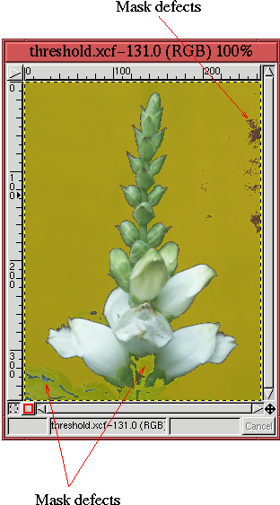 4.45, the result of using Threshold produces an almost perfect mask for the flower. However,