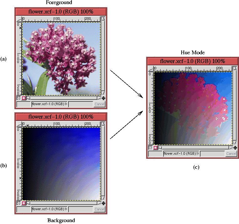 blending mode is chosen, the result is the hue of the foreground