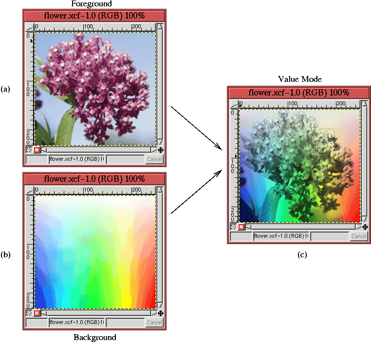 The Value blending mode produces resultant pixels that are a