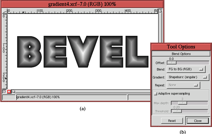 illustrates examples of conical, bi-linear, and shapeburst gradients.