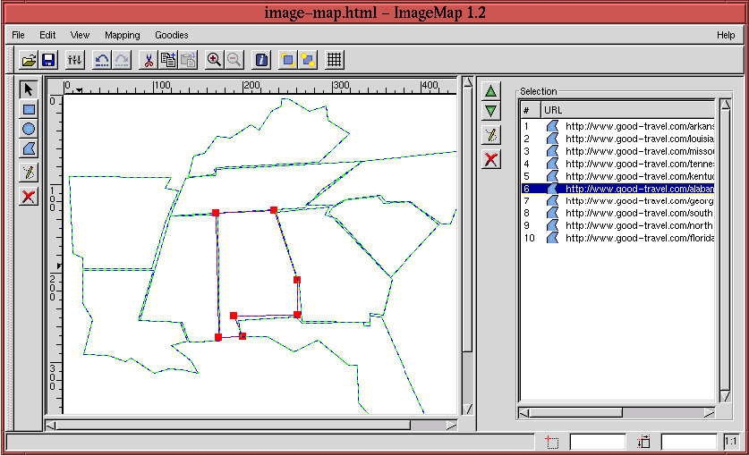 Map of the Southeast United States and the ImageMap Dialog