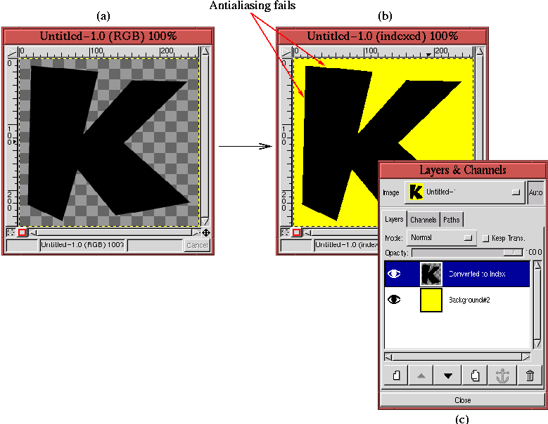 illustrates how a conversion to Indexed format ruins the antialiasing