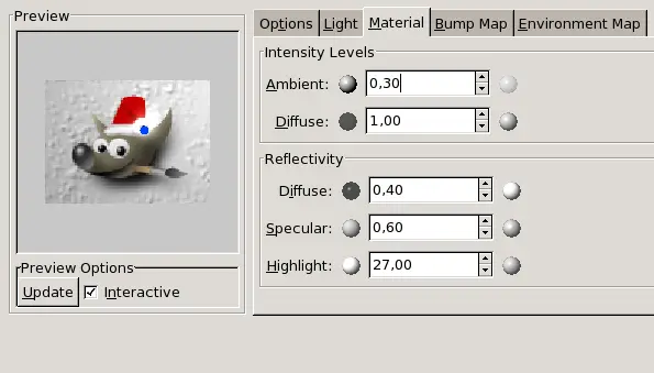 “Bumpmap” options of the Lighting filter