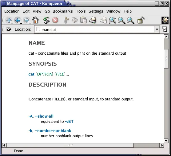 and you will get a browsable Info page about the info command. Similarly, "man:ls" will present you with the man page for the