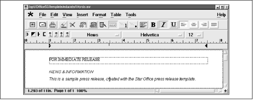 Figure 8.7 shows StarWriter, StarOffice's word processor. StarWriter provides PGP-encrypted email and other features not found in Microsoft Office 97. Like Applixware's Words, it imports and exports a variety of document types, including Microsoft Word 97.