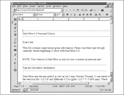 Another popular Linux desktop suite is StarOffice, a product of Sun
