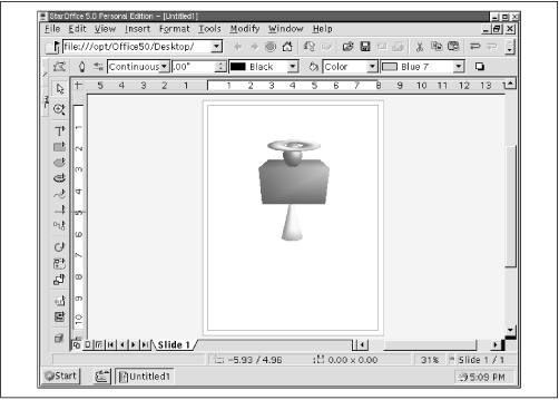 Figure 8.9 shows StarDraw, StarOffice's drawing program. StarDraw provides a wide range of drawing tools and effects, and works with a variety of file types, including even Windows Metafile (WMF).