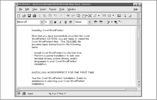 Figure 8.11 shows WordPerfect for Linux in operation.