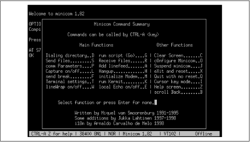 minicom presents. Like the Linux install