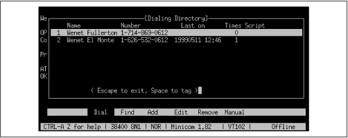 minicom's Dialing Directory dialog box,