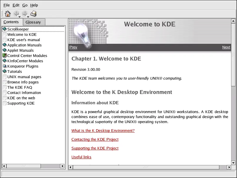 You can access a comprehensive set of documentation about KDE