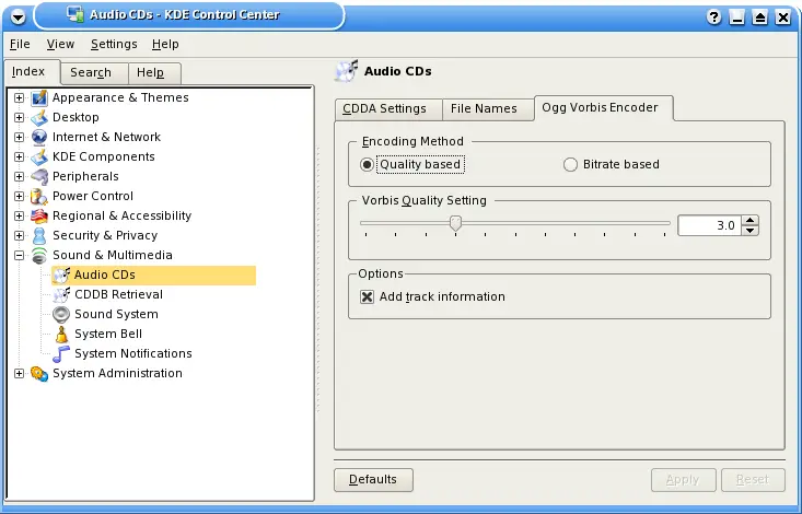 KDE to retrieve the Artist/Album/Track information about your CDs from the