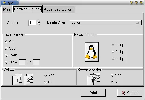 types, collation, n-up, etc) in an easy-to-use graphical way.