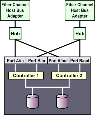 diagram. Some RAID arrays include a built-in hub so that each host port