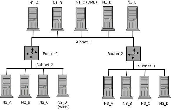 subnet 1 is configured as the DMB (i.e., it will collate the browse lists for the workgroup). Machine N2_D is