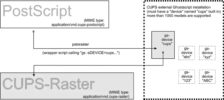 stage of the rasterization process. Its input is of MIME type application/vnd.cups-postscript; its output is