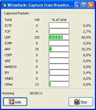 This dialog box will inform you about the number of captured packets and