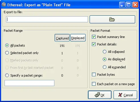 5.6.4. The "Export as C Arrays (packet bytes) file" dialog box