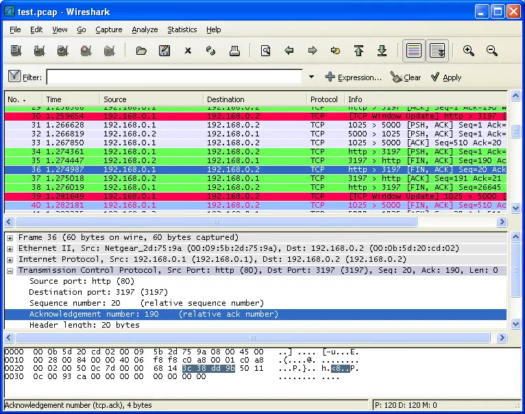 Figure 6.1, “Wireshark with a TCP packet selected for viewing”. It also has the Acknowledgment number